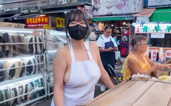 【画像】プルンプルン横乳の中国女子大生露天商、ノーブラで脳内崩壊!